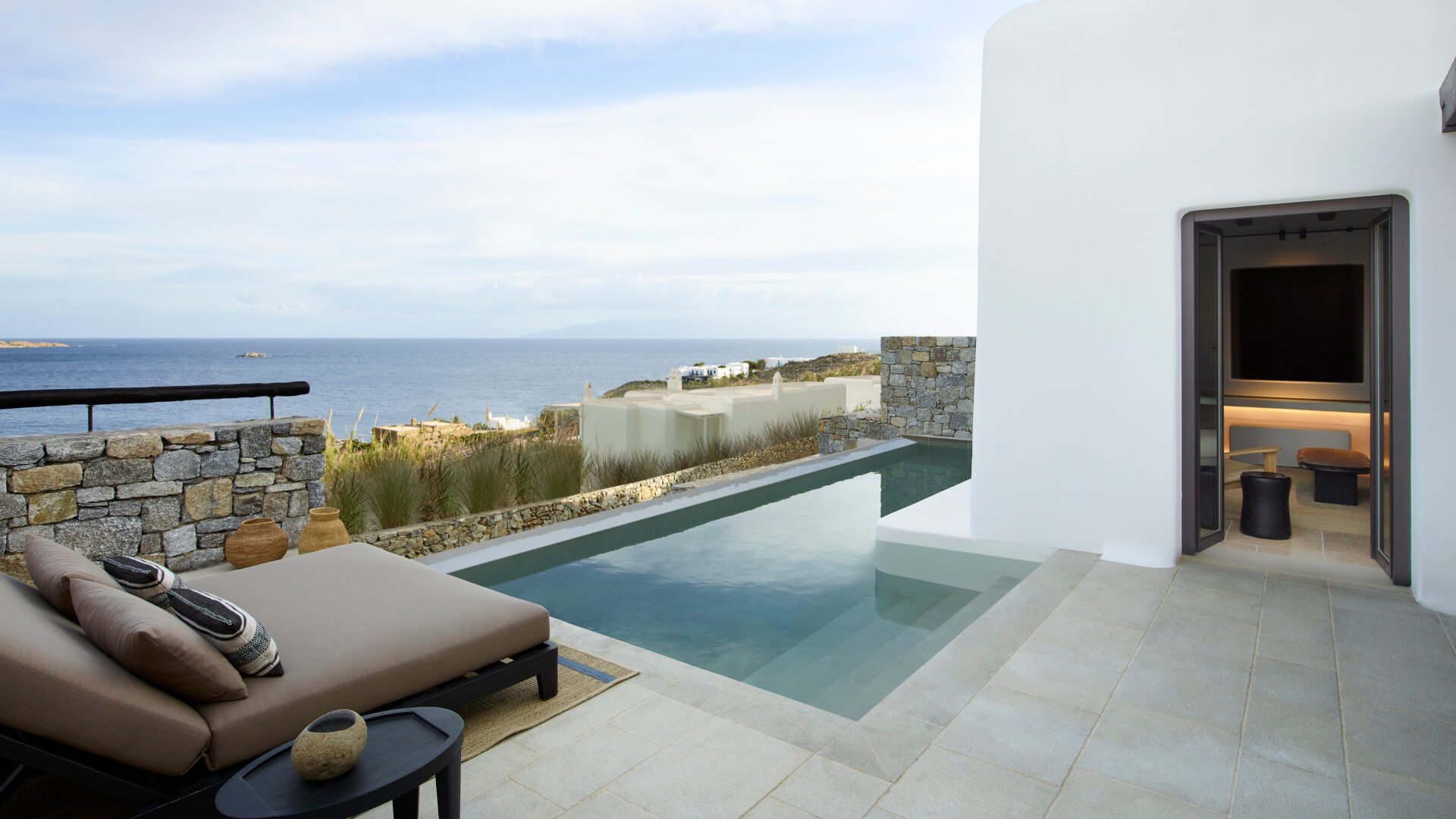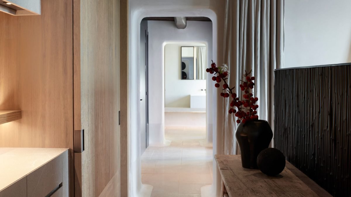 OUR ELEGANT MYKONOS SUITES ARE DISCREETLY EMBEDDED INTO THEIR NATURAL SURROUNDINGS CREATING A HAVEN OF CALM AND REFINED ELEGANCE.
